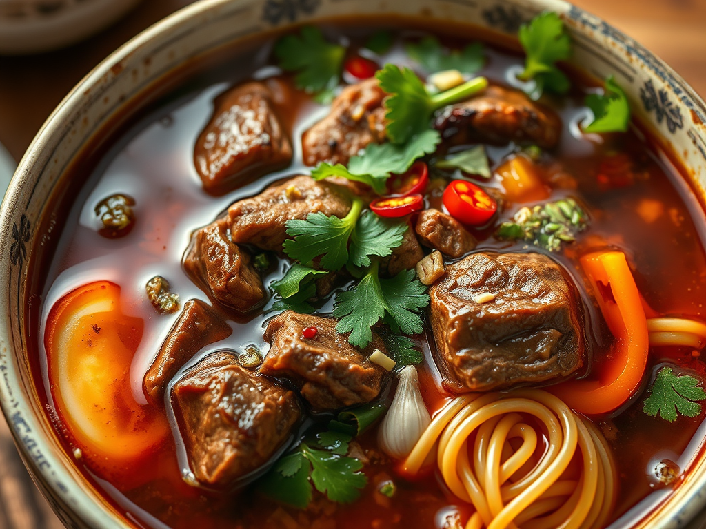 In conclusion, beef noodle soup is a dish that tells the story of Taiwan. From the choice of ingredients to the methods of preparation, it reflects the island’s journey through history—absorbing influences from different cultures, adapting them to local tastes, and creating something distinctly Taiwanese. It is a testament to Taiwan’s ability to balance tradition with innovation, a dish that brings comfort and warmth while representing the island’s complex and layered identity. With its rich flavors and cultural significance, beef noodle soup is a metaphor for Taiwan itself: a land of diversity, resilience, and an ever-evolving identity.
